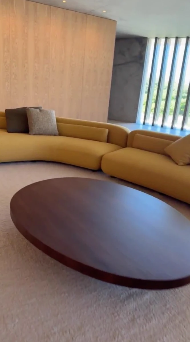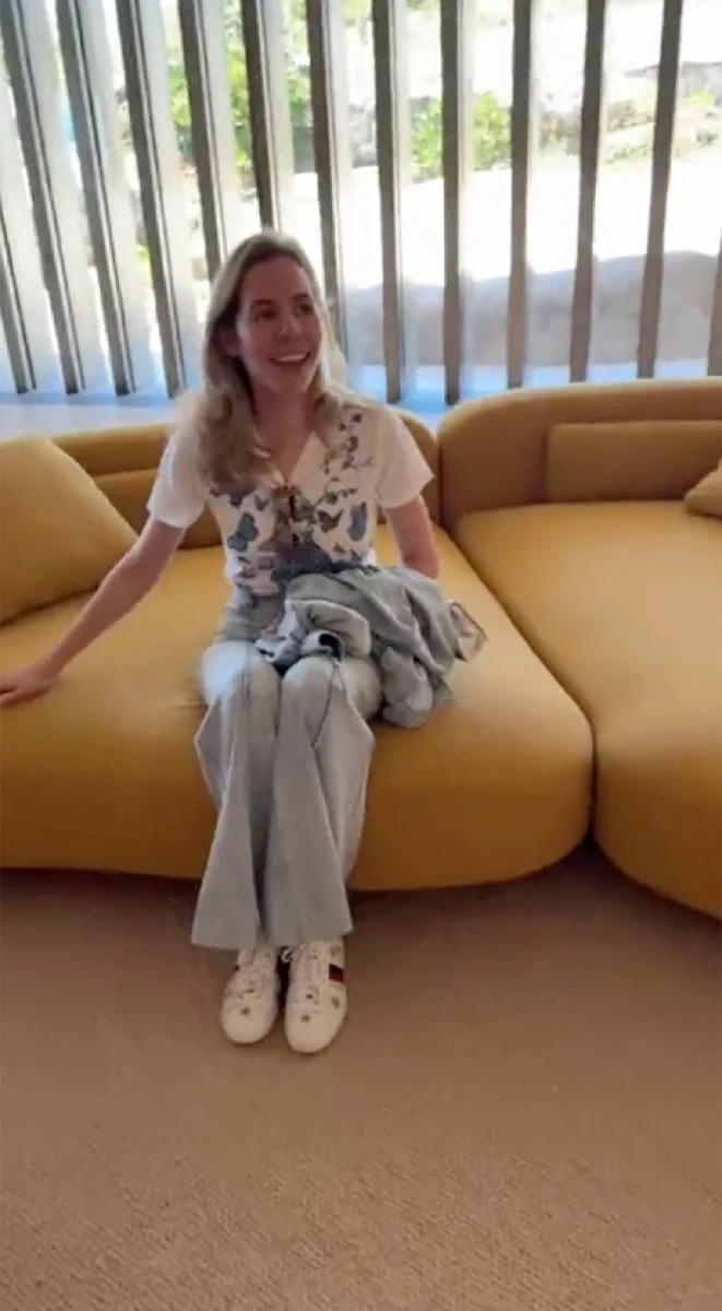 El living y el comedor anticipan una animada vida social durante el verano 2026 para la familia de Eduardo Costantini que en el video sugiere que el sofá XXL de la sala de estar para reuniones puede resultar también un buen spot para un programa de tevé conducido por Elina.