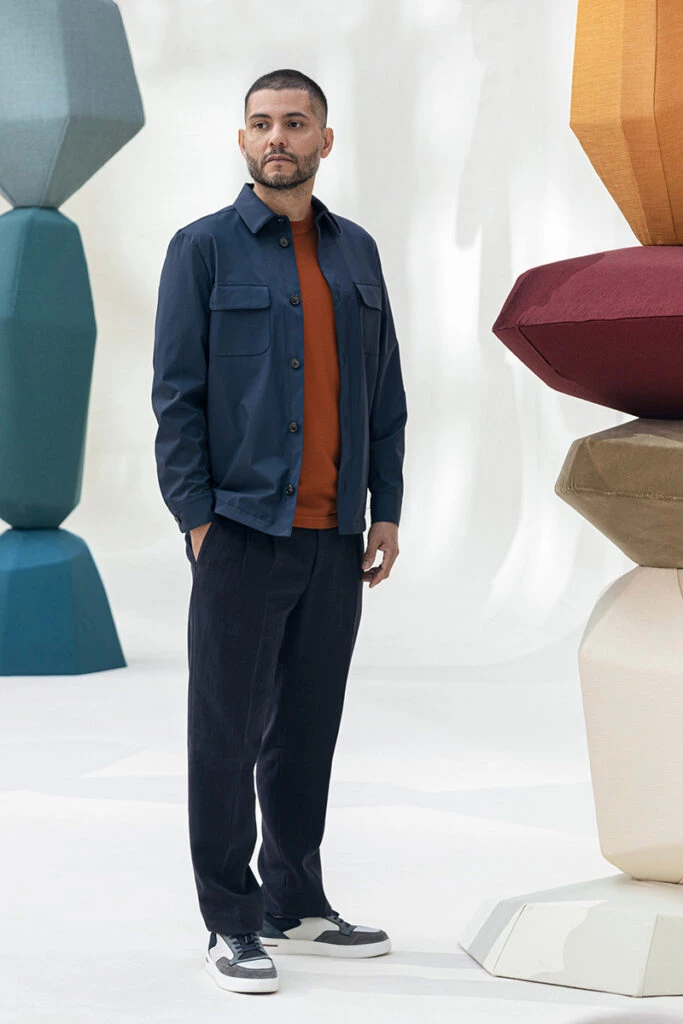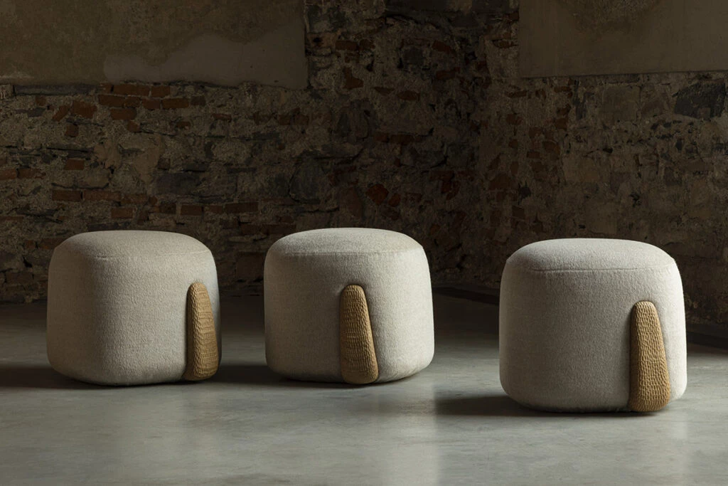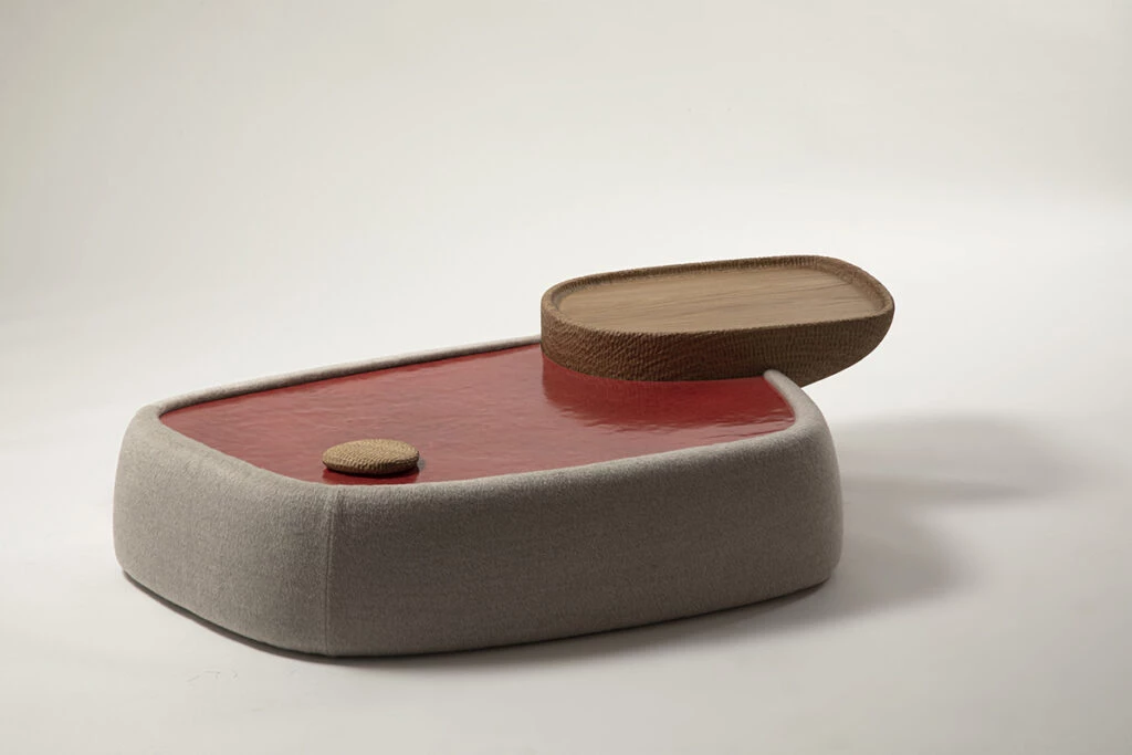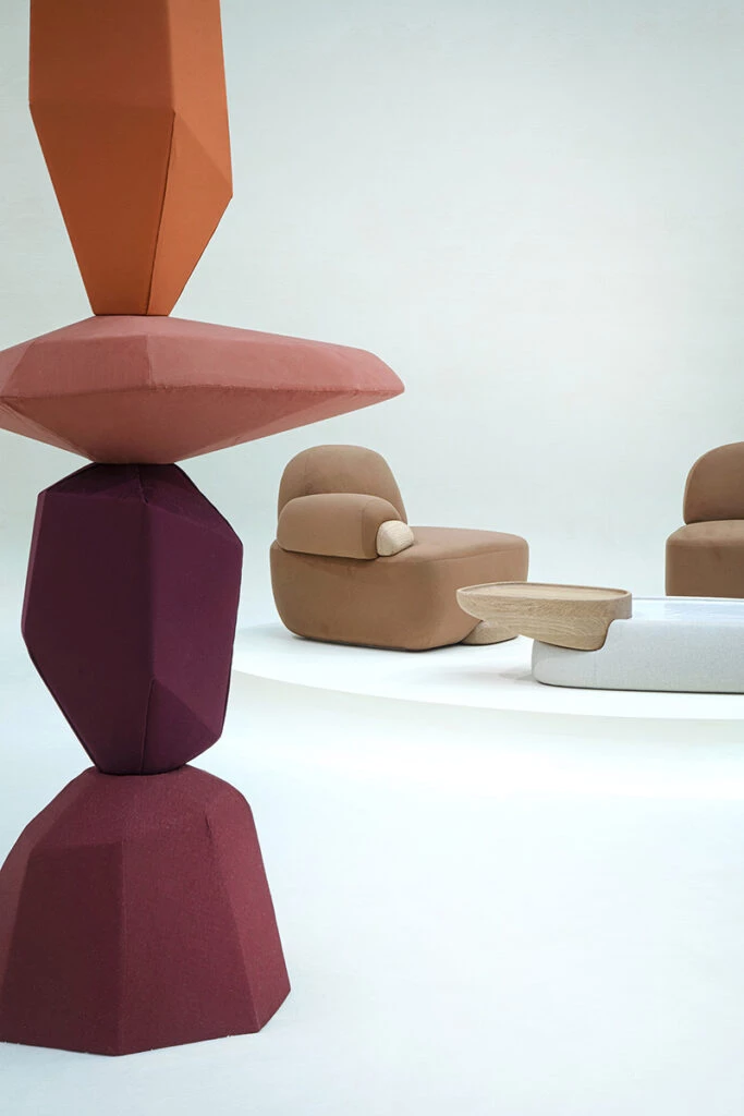 “En la colección Apacheta conviven tres materialidades que sintetizan diferentes texturas y formas de estos paisajes -explicó el artista y diseñador argentino- La suavidad del textil de Loro Piana, la madera tallada por artesanos y la cerámica crequelada y brillante representando diferentes elementos”.