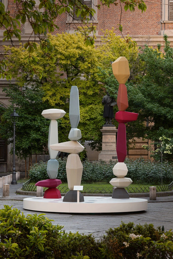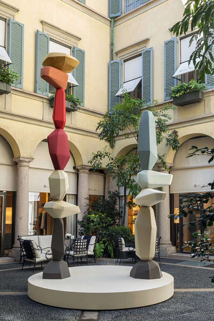 “Apacheta” también incluyó dos instalaciones al aire libre, en Piazzetta Brera y via Montenapoleone 27, en el patio de la tienda de la firma italiana.