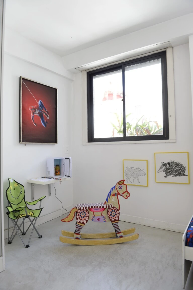Otro ícono de la nueva casa de Benito Fernández hecha para vivir y convivir durante largas jornadas –noches incluidas- con sus nietos, es el caballito vintage de madera que adquirió en una subasta a beneficio.