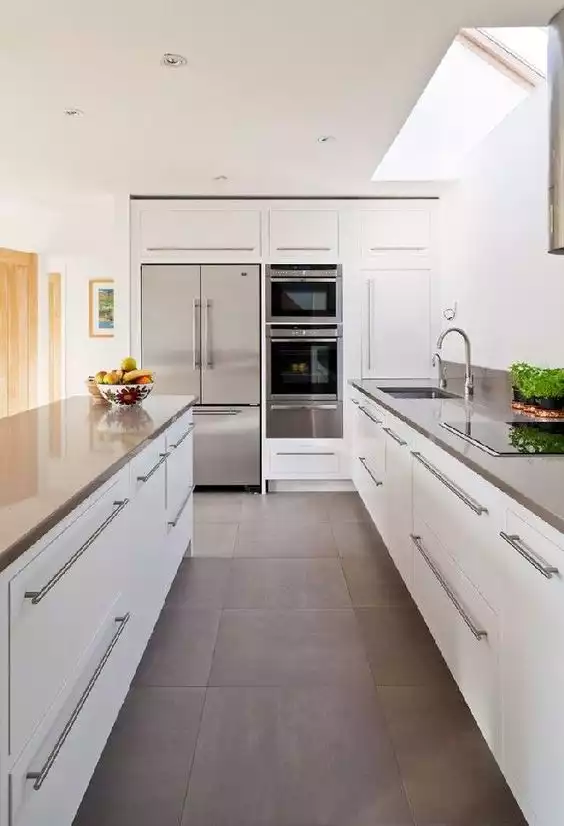 Sin embargo, si ya se cuenta con una mesada a lo largo y la idea de reformar no está en los planes, se recomienda que la heladera este en una punta, el horno en otra y en el medio la parte de la pileta. De esta manera se contribuye a más funcionalidad y comodidad a la hora de cocinar.