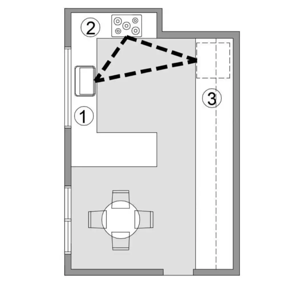 El triángulo de trabajo es una herramienta clave que permite de una forma sencilla, diseñar o reformar una cocina teniendo en cuenta como base, su funcionalidad.