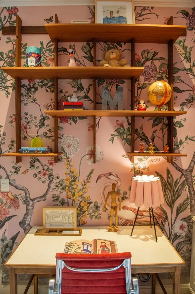 Un mundo de flores y romanticismo para este cuarto soñado, con salida directa a un jardín. Diseñado por Martina Correa, tiene como protagonista al hermosísimo papel mural Nina (@Tintachini), realizado especialmente para esta habitación con una temática floral y mucho color.