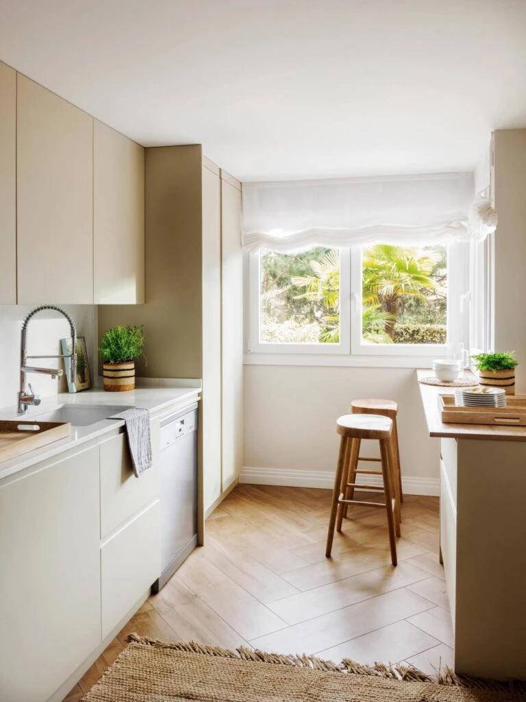 Y es que el dibujo que crea la colocación de sus láminas en ángulo de 60º aporta dinamismo y elegancia a los pisos. Además, suma calidez, alarga visualmente el espacio y distribuye mejor la luz.