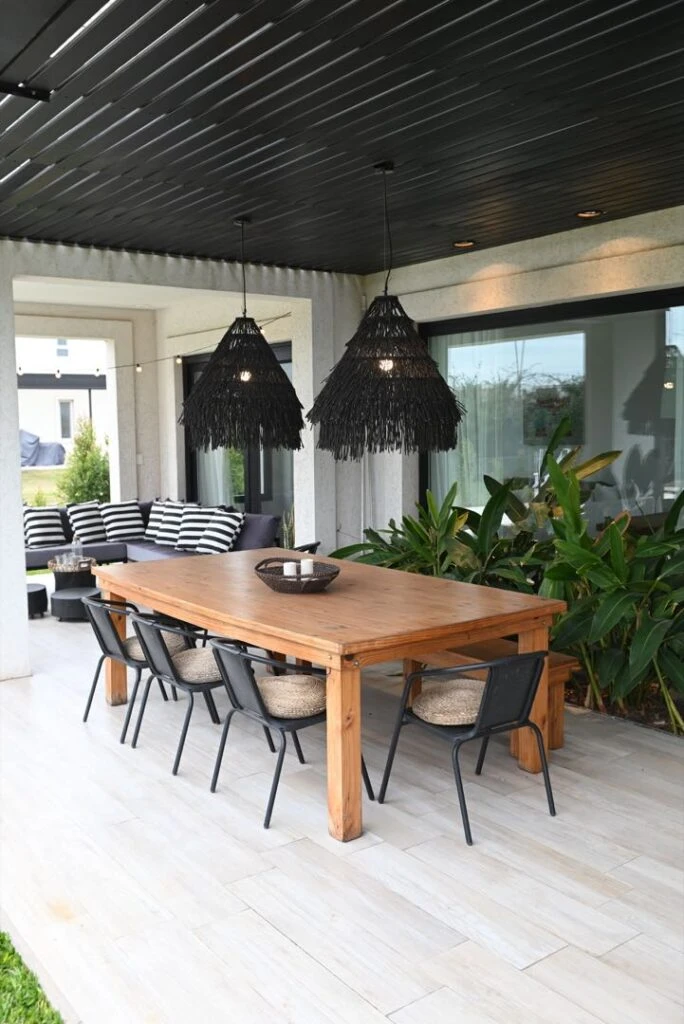 El juego de blanco y negro es también aquí una constante. La deco y el paisajismo son absoluto mérito de los dueños de casa.
