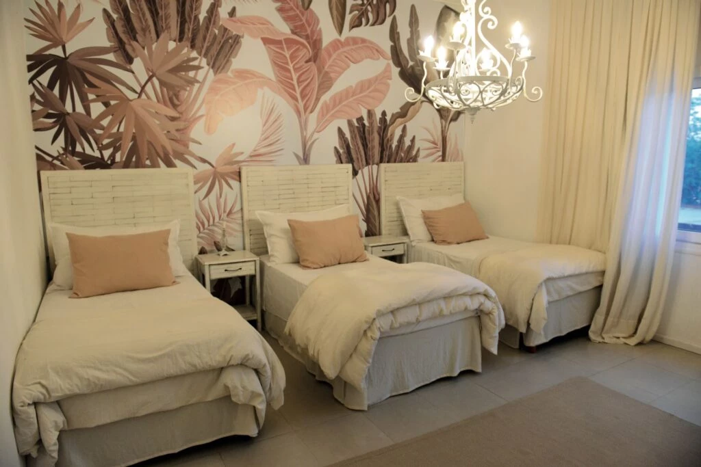 En el cuarto de las hijas, un papel mural con grandes flores marca el ritmo de la ambientación.