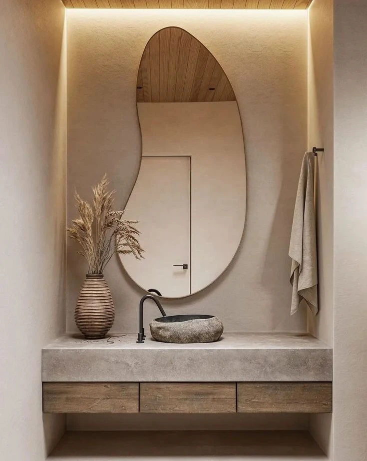 Si te animás a algo más original y moderno, los espejos orgánicos son una buena apuesta. Con formas irregulares y dinámicas, aportan un toque único y muy tendencia.