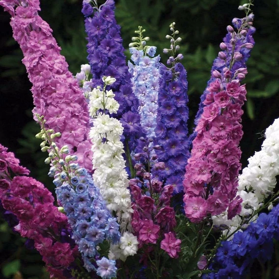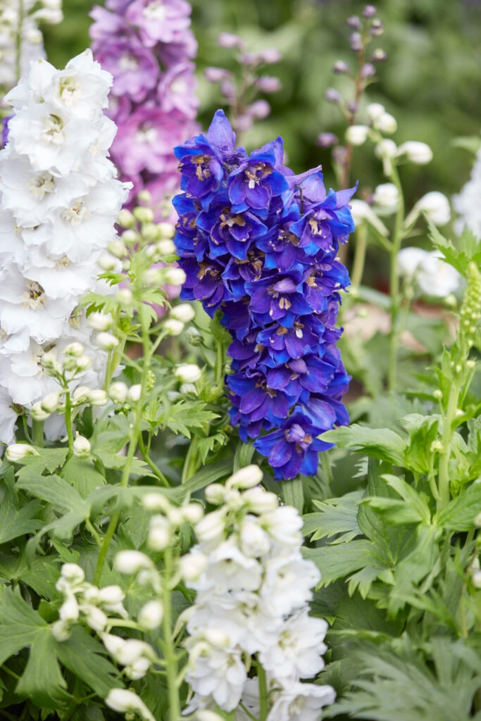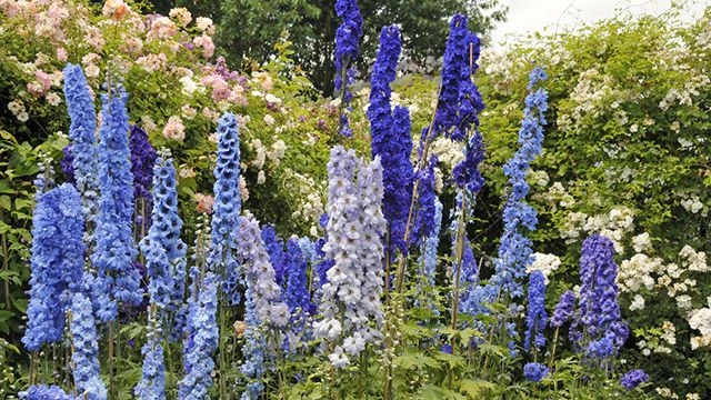 Con sus diferentes tonalidades, que van desde el azul y rosa hasta el violeta y el blanco, esta planta herbácea perenne presenta racimos florales que alcanzan el metro y medio de altura (algunas variedades pueden superar los dos metros) en un despliegue vertical de impactante efecto en los jardines.