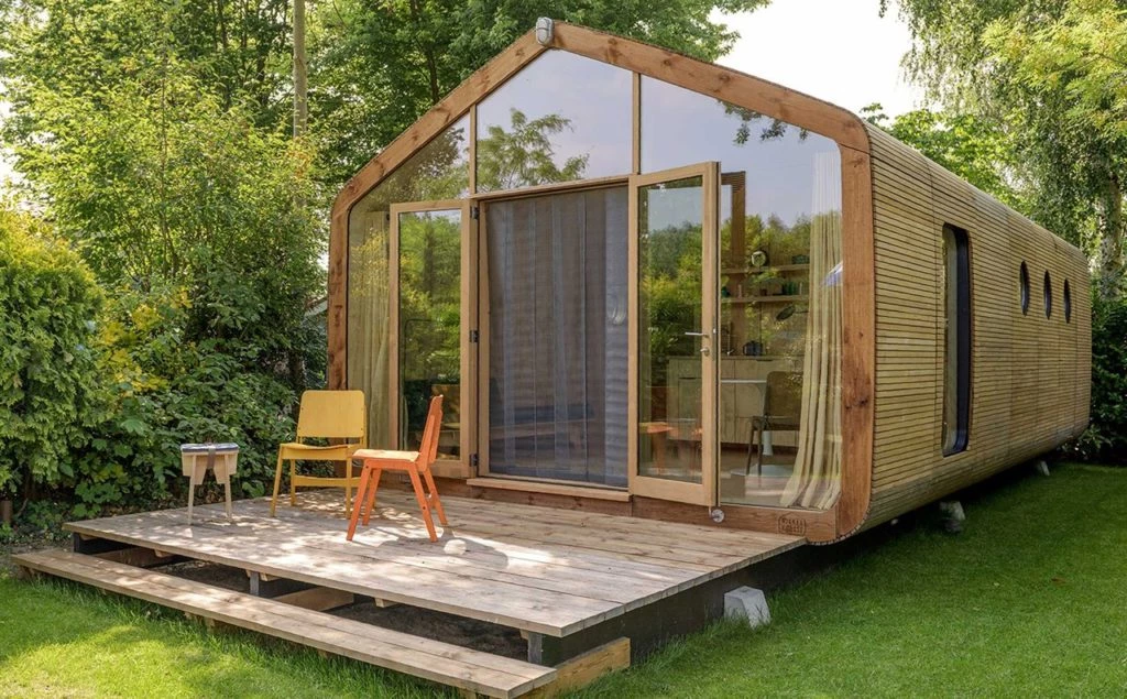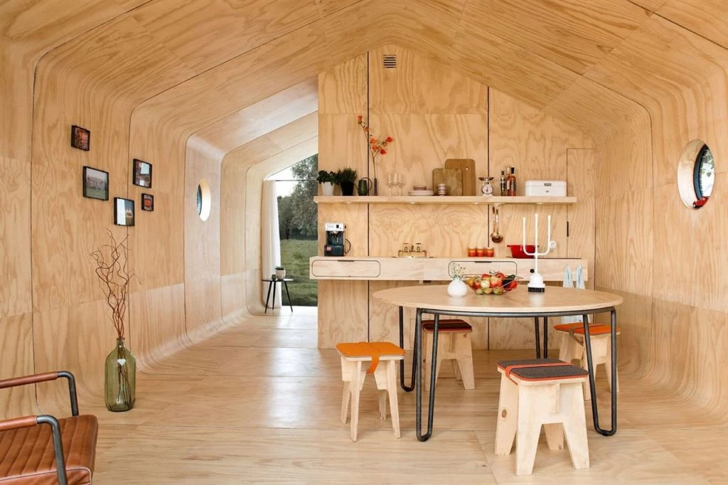 Así lo demuestran las casas modulares de la firma holandesa Wikkelhouse, construidas con 24 capas de cartón, aisladas con una capa de lino y acabadas por dentro con madera.