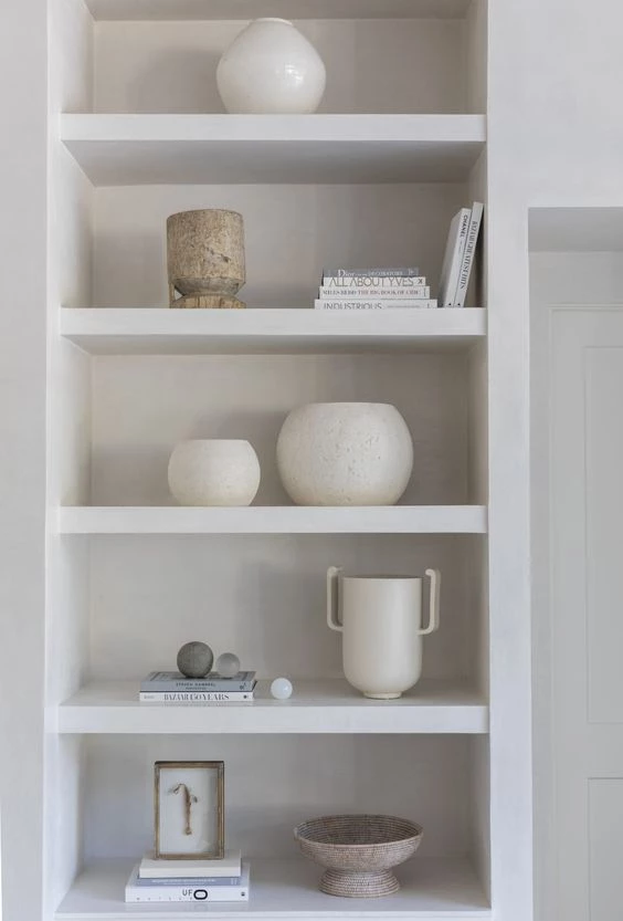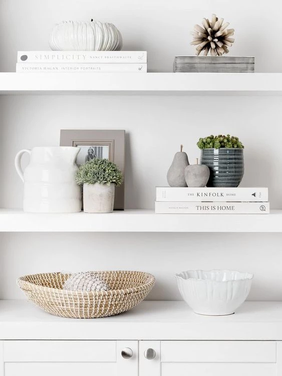 Ahora bien, al momento de colocar cada objeto y complemento, podés jugar con el minimalismo y la simétrica. Así los estantes, además de estéticos, van a dar una sensación de orden en el ambiente.