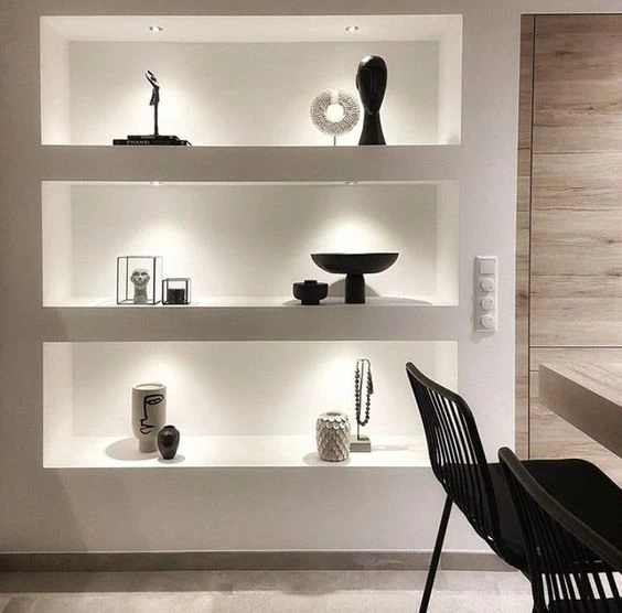 Otra opción es iluminar la estantería para destacarla en el ambiente.