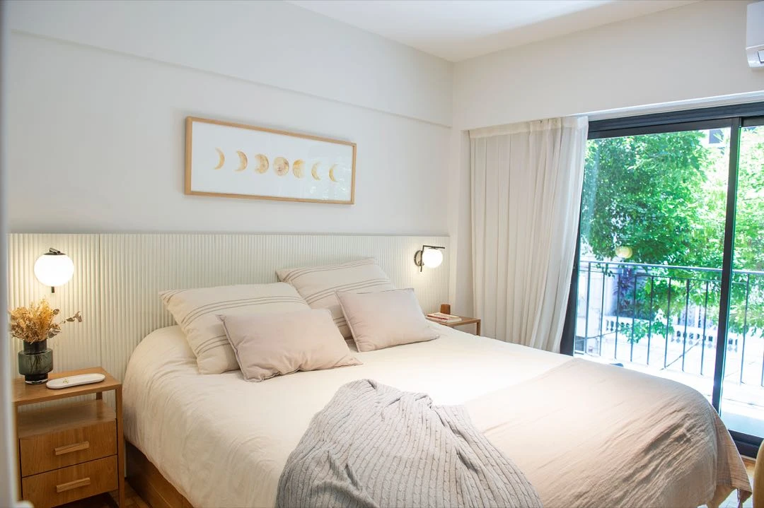 Este departamento ubicado en el corazón de Palermo y que mira directo a la copa de los árboles, fue intervenido por el estudio María Home (@mariahome.ba), la arquitecta Guillermina Frangi y la diseñadora Belén Benedetti, con un estilo urbano y contemporáneo, donde mandan las líneas simples y los toques de color.