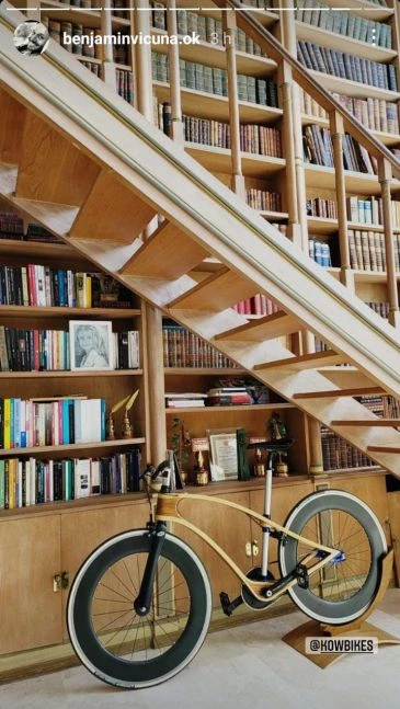 Frente al living aparece la biblioteca repleta de libros y la escalera que lleva al primer piso. Allí, el actor tiene un lugar para fotos y los premios que ha cosechado en su carrera y también para su bicicleta, un modelo de diseño exclusivo de la marca KOW. "La hemos hecho con un amigo argentino, es un diseño único y la uso para salir a pedalear", contó Vicuña.