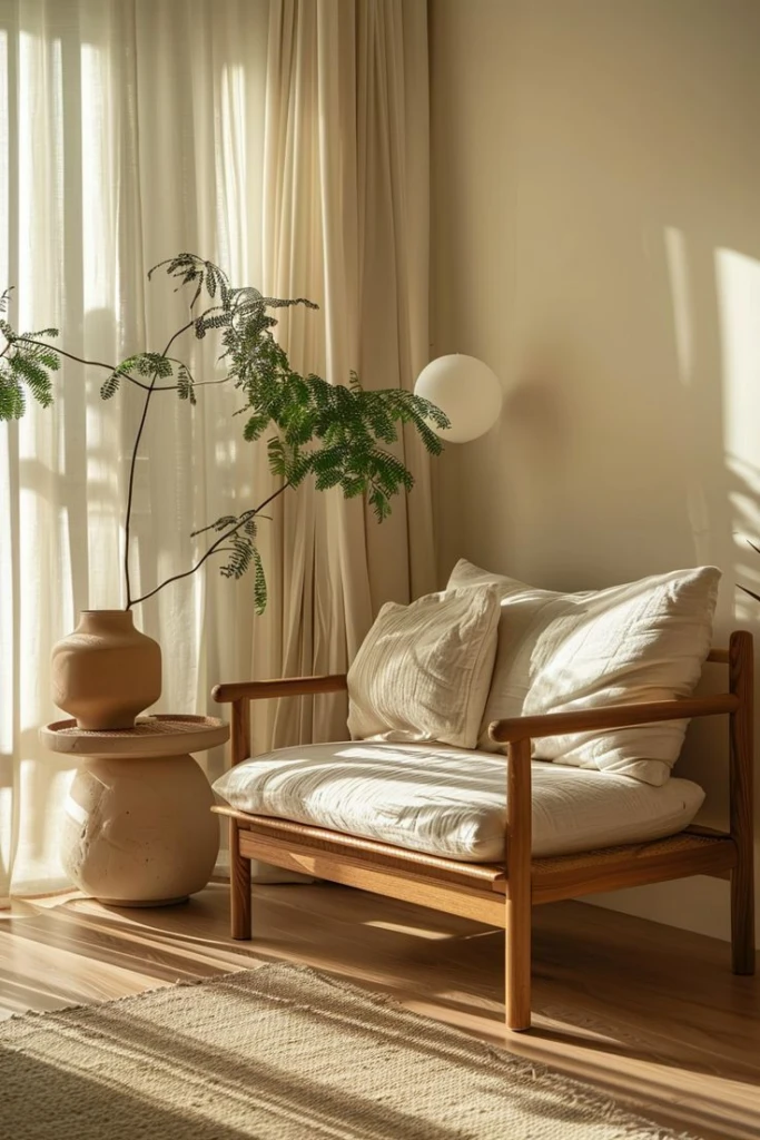 Un sillón de lino con almohadones de algodón, unas cortinas largas o una mesa de madera son ejemplos perfectos de cómo sumar esa vibra relajada y auténtica.