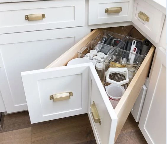 Funcionalidad, orden y organización, es lo que caracteriza a estos tipos de cajones diseñados especialmente para optimizar al máximo sus interiores a través de múltiples divisiones: para cubiertos, para platos, para ollas, para tablas, para condimentos, etc.