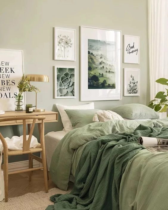 El verde es otro color que transmite sensaciones de armonía y equilibrio. Pintar las paredes de tu dormitorio con sus variantes más claras, como el verde pastel o el verde suave, puede brindarte una sensación de conexión con la naturaleza y crear un espacio relajante.