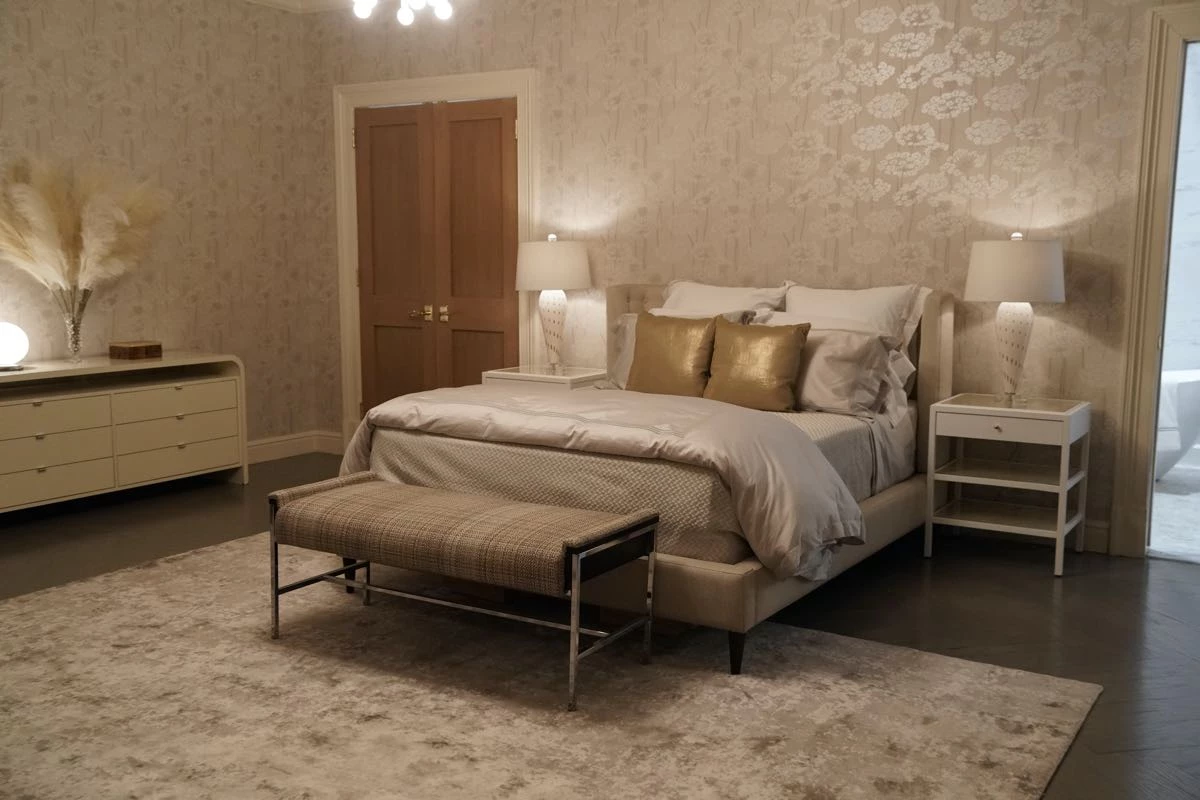 Y en el caso del espacio a la medida del personaje de Selena Gomez, Patrick Howe cuenta: “El apartamento renovado de Mabel, en blancos frescos y neutros, significa su nuevo comienzo y su capacidad para encontrarse a sí misma y seguir adelante, tanto en su carrera como en sus relaciones. Así, la paleta es cálida y acogedora, desde los patrones naturales orgánicos de los papeles pintados y la tela bouclé de los sofás, hasta los accesorios”, describe Patrick Howe sobre el ambiente que ideó junto con el decorador Rich Murray.