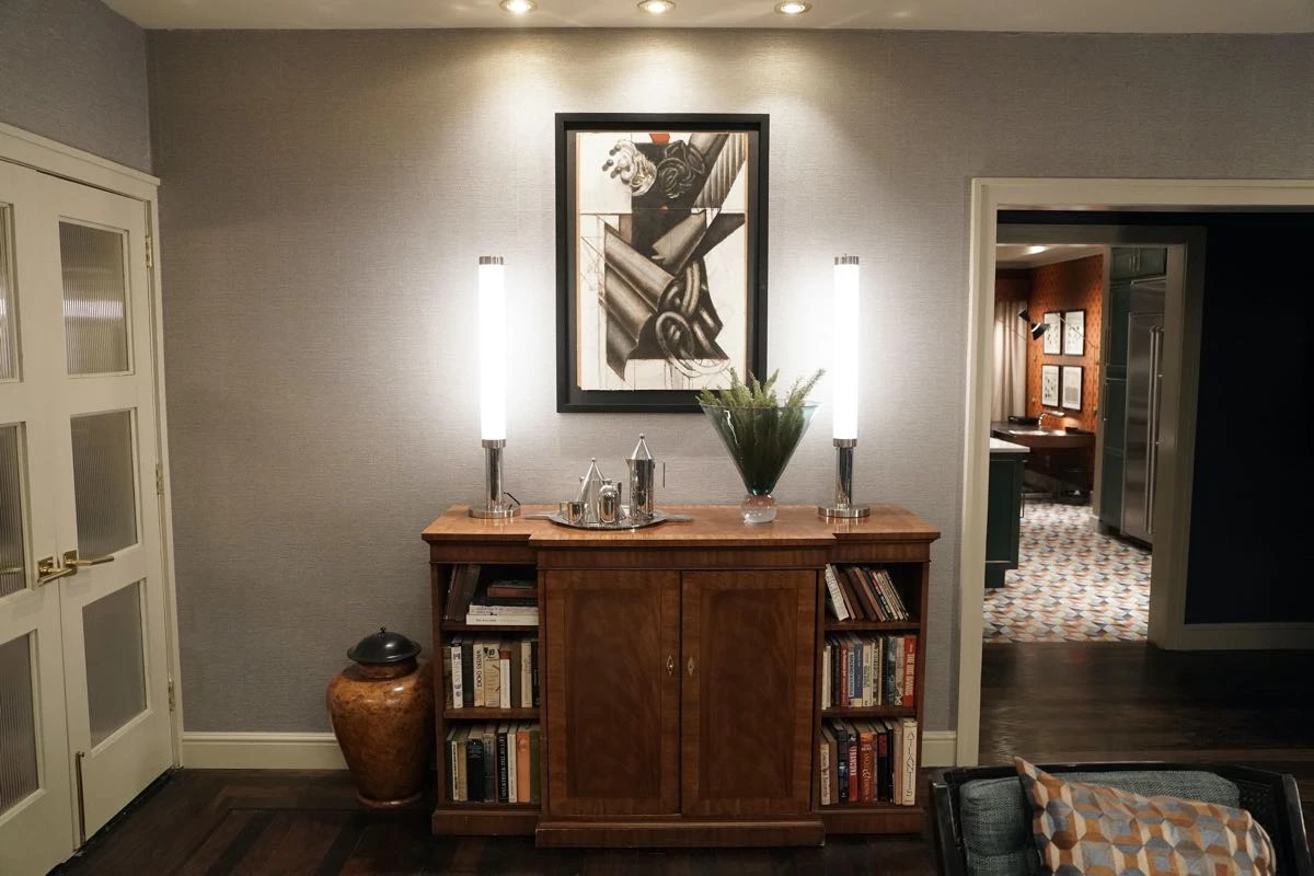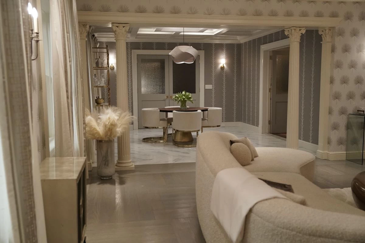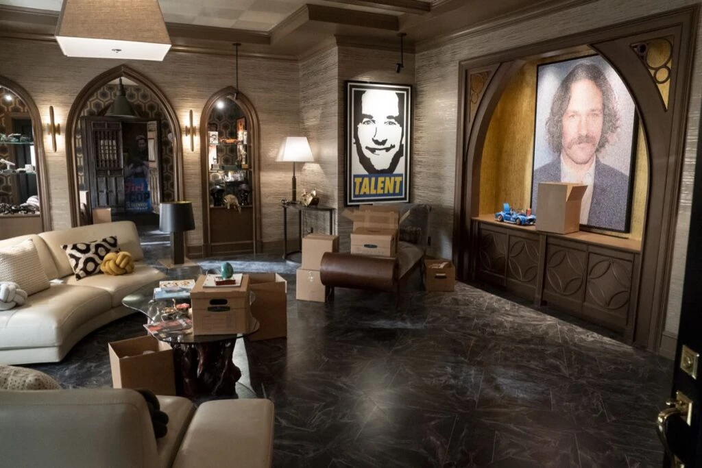 Por su parte, el escenario para Oliver (Martin Short) refleja “las extravagantes excentricidades de un director de teatro narcisista fracasado y con problemas financieros -describe el diseñador- Sus espacios están amueblados y repletos de accesorios y recuerdos de todos sus espectáculos pasados. Hay una decoración ecléctica que reflejan su mentalidad hiperactiva, mostrada en tonos teatrales de burdeos y dorados”.