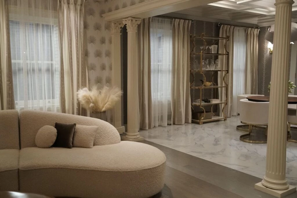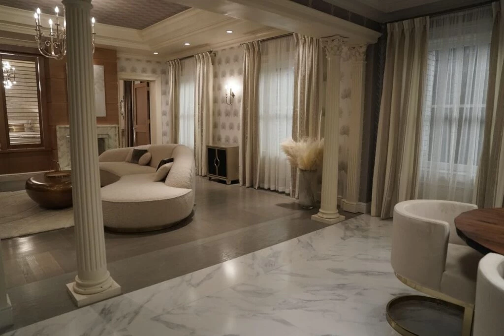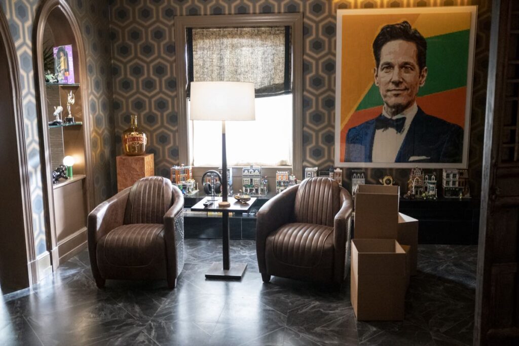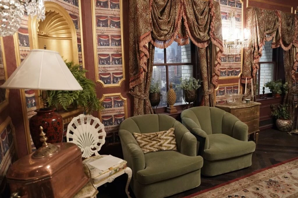 Por su parte, el escenario para Oliver (Martin Short) refleja “las extravagantes excentricidades de un director de teatro narcisista fracasado y con problemas financieros -describe el diseñador- Sus espacios están amueblados y repletos de accesorios y recuerdos de todos sus espectáculos pasados. Hay una decoración ecléctica que reflejan su mentalidad hiperactiva, mostrada en tonos teatrales de burdeos y dorados”.