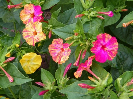 Mirabilis jalapa, más conocida como dondiego de noche, ofrece una abundante y larga floración que se extiende durante todo el verano y parte del otoño. Las flores de diferentes colores y combinaciones (rosa, fucsia, amarillo, naranja, blanco, etc.) se abren cuando no hay sol y de noche, evocando un exquisito aroma.