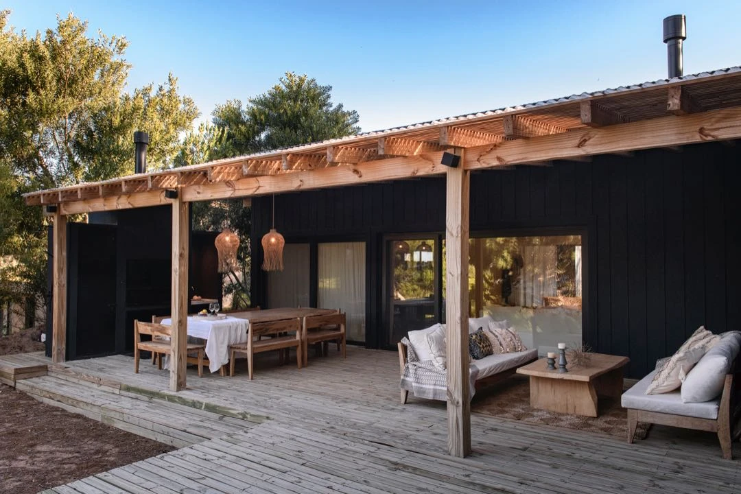 Esta casa de una planta se explaya cómoda frente a un bosque, en el bellísimo balneario de Costa Esmeralda. Para marcar una diferencia con las típicas propuestas de la zona, las arquitectas del estudio Casa Orilla, con Valeria Sala a la cabeza, se jugaron por las fachadas oscuras revestidas en placas siding, combinadas con aberturas negras para acentuar la apuesta y, en perfecto contraste con un interior blanquísimo.