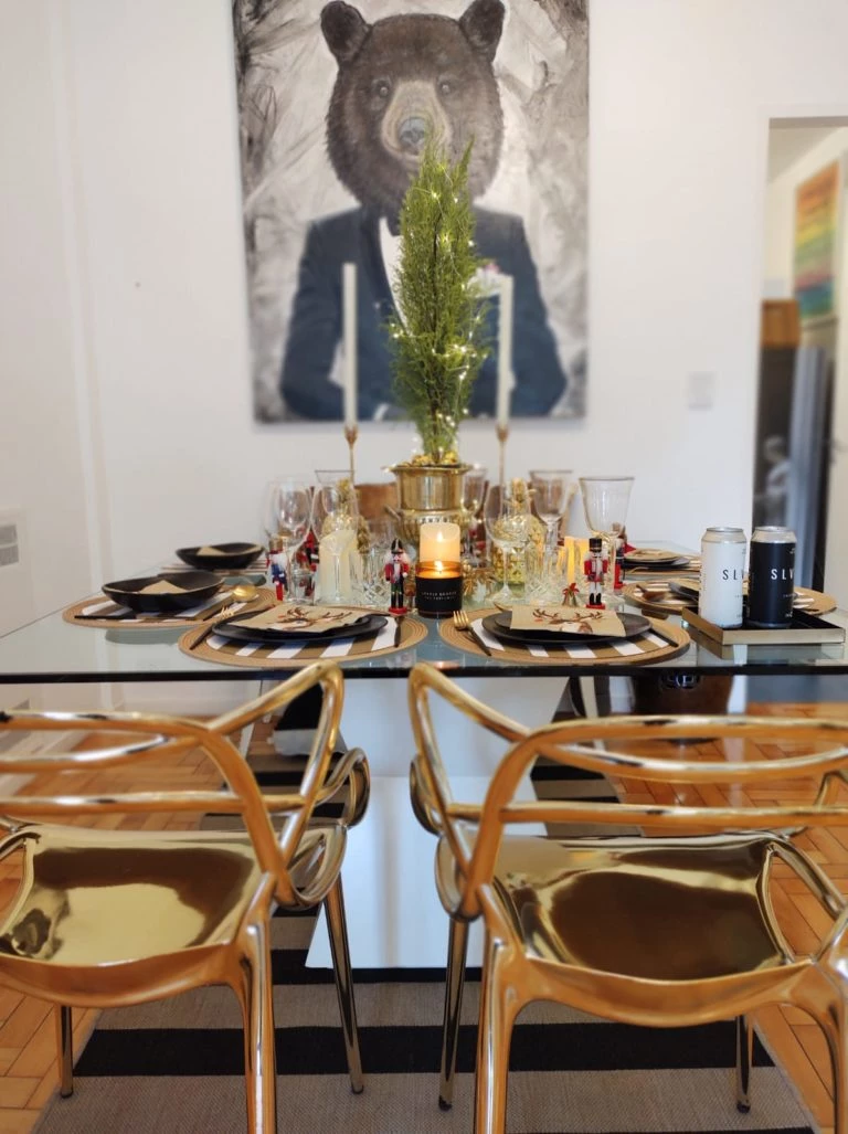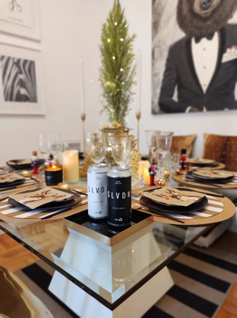 "Armé la mesa familiar más linda con vajilla y cristalería de Volf. Para darle un toque especial, sumé algunos detalles navideños para cada comensal, como son los soldaditos (Aires de Fiesta Mágico) y las bolas doradas con el nombre de cada uno", explica.