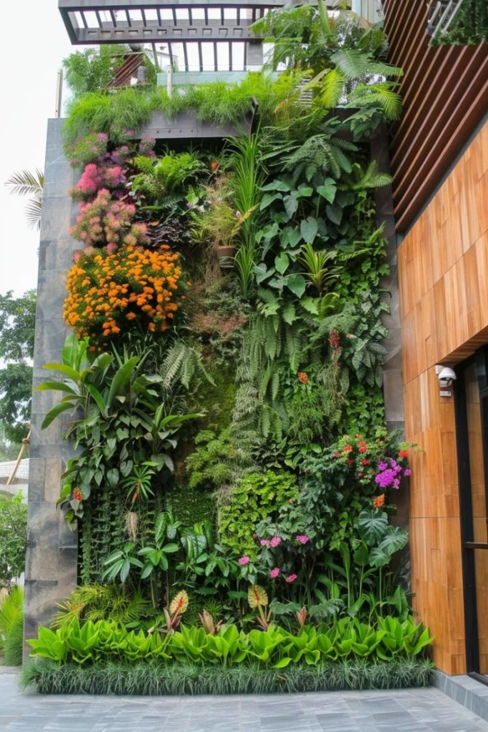 Depende del clima, el tipo de fachada y el mantenimiento que se quiera dar. Algunas especies comunes en jardines verticales: