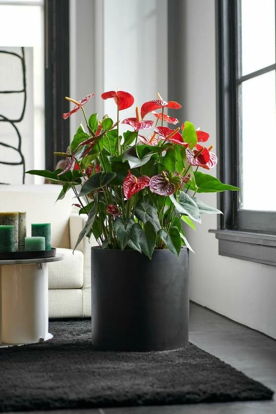 El anturio rojo, también conocido como "flor del amor" por la forma de corazón que tienen sus hojas, es una de las plantas de interior más apreciadas por su belleza pero también por su capacidad de purificar el aire y atraer energías positivas.