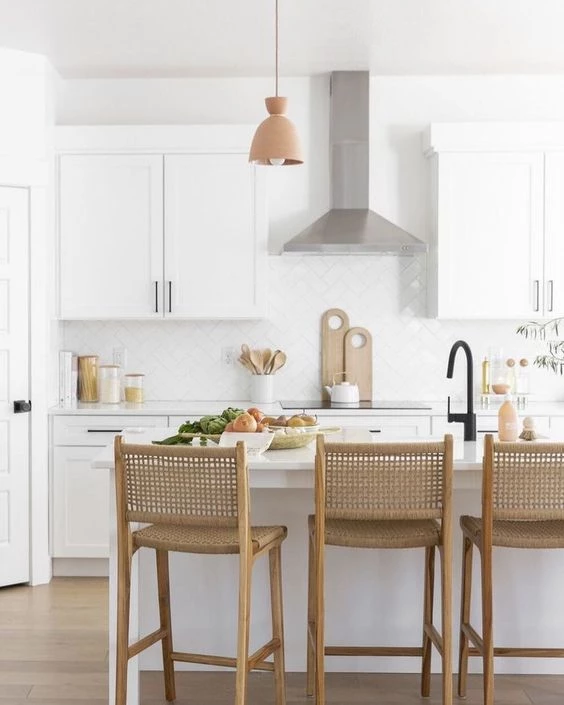 Lo ideal es que predomine el color blanco ya que permite reflejar la luz y cuida la higiene del espacio. Se le puede sumar calidez a través de muebles y objetos decorativos en madera.