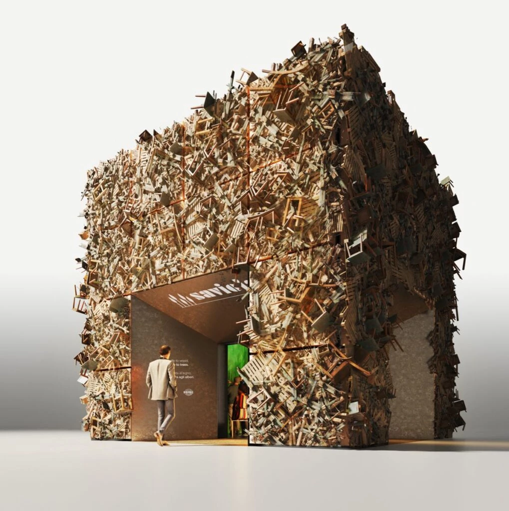 Una pila de cuatro toneladas de muebles desechados se convertirá en un espacio concebido para inspirar a arquitectos y diseñadores.