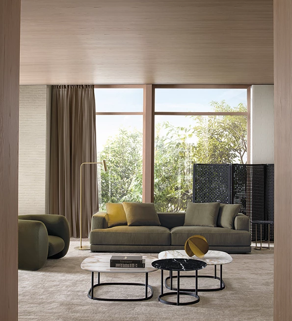 Los diseños delicadamente redondeados toman la delantera. Se ven sofás de siluetas curvas, mesas que rompen las líneas geométricas y otros componentes que aceptan el diseño curvy en pos de sumar mayor confort.