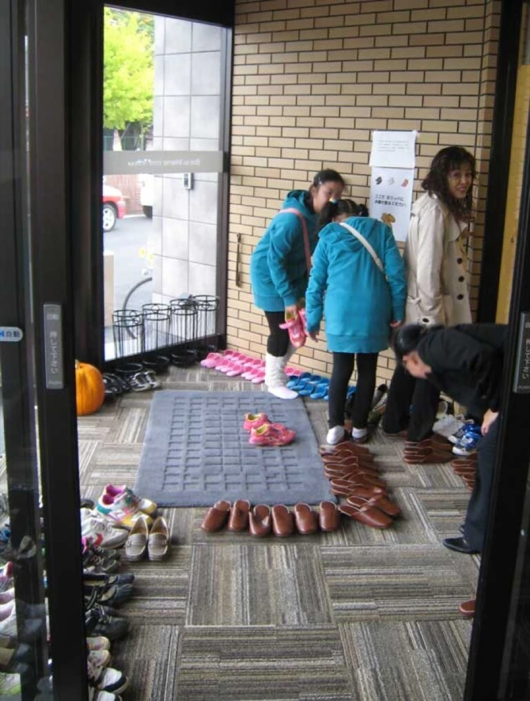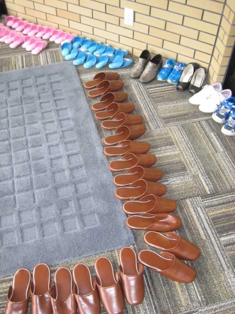 El genkan es un área de ingreso claramente delimitada que se encuentra inmediatamente después de la puerta principal y suele resolverse con un desnivel respecto del interior, generalmente un escalón.
