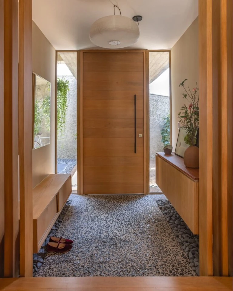 En muchas viviendas occidentales, la entrada suele resolverse como un pasaje rápido. La puerta se abre y el interior aparece de inmediato.