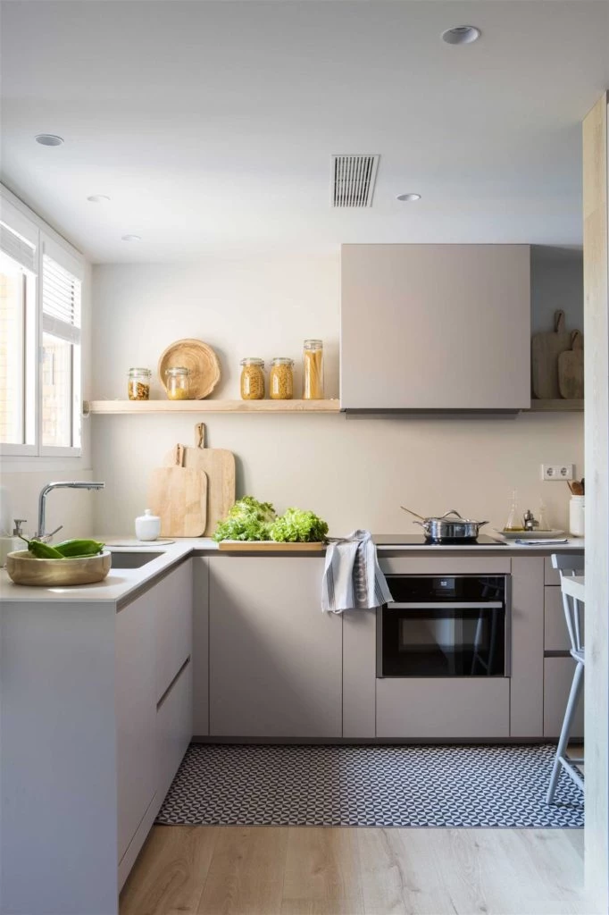 El greige es un color que va muy bien especialmente con el blanco, con el que conforma un mix ideal para un espacio de espíritu sencillo.