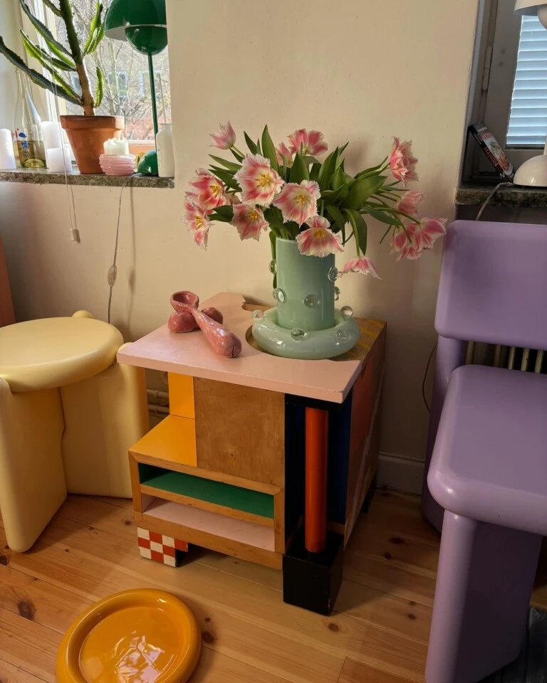Así es su vida entre paredes color pastel: una mezcla de juego, disciplina y humor. A veces, un refugio; otras, una pasarela improvisada por la que desfilan sus ideas y sus objetos virales. “Intento mantener esa energía en el estilo y en el proceso de diseñar siempre con humor. Aunque ahora ya no es tan fácil… Pero yo lo sigo intentando con todas las fuerzas”.