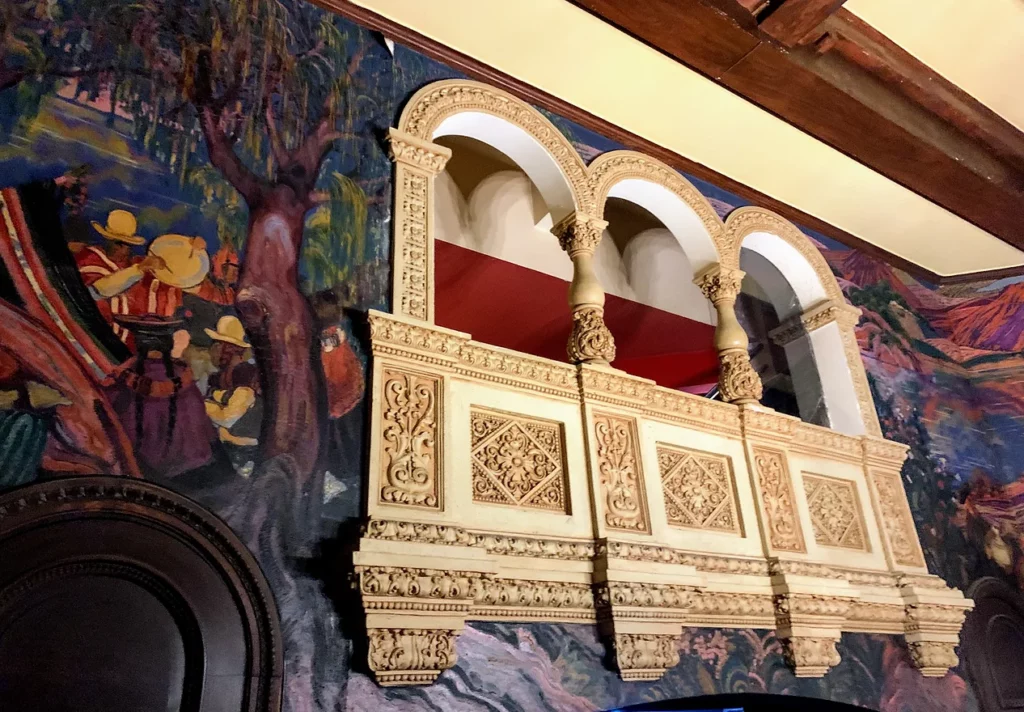 Una de las obras más destacadas, sin dudas es el famoso gran mural que fuera pintado sobre tela por el artista Alfredo Guido (1892-1967), concluido en el año 1927. Se trata de riquísimas escenas enmarcadas en un paisaje andino, donde se destaca en un sector, la fachada de la Catedral de Lima y festivas imágenes carnavalescas que evidencian la reunión de ambas culturas, entre festejos religiosos y paganos. Mientras, en otra parte del mural, se manifiesta la naturaleza del altiplano con el lago Titicaca y las totoras. Con elementos representativos como los trajes típicos, los colores terruños, la agricultura, el carnaval, la ganadería y las festividades como grandes protagonistas.