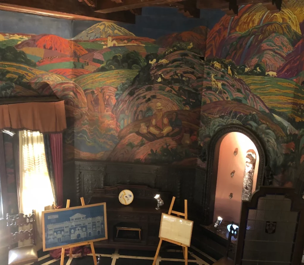 Aquí, Alfredo Guido guarda una lineal coherencia entre las pinturas murales que se despliegan en el gran comedor de la residencia con su elocuente idealización del espíritu andino. Una parte de la casa presenta rasgos andaluces, sin dudas, está cargada de simbolismo.