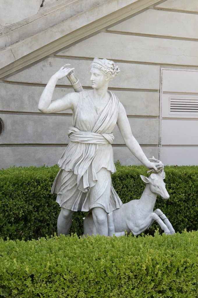 Se destaca la réplica en bronce de los Caballos de Marly, una obra vinculada con la opulencia del reinado de Luis XIV en Francia. Se trata de dos grupos escultóricos de caballos encabritados con las crines al viento (posados sobre las patas traseras y levantando las delanteras) junto a un joven que intenta controlar su movimiento.