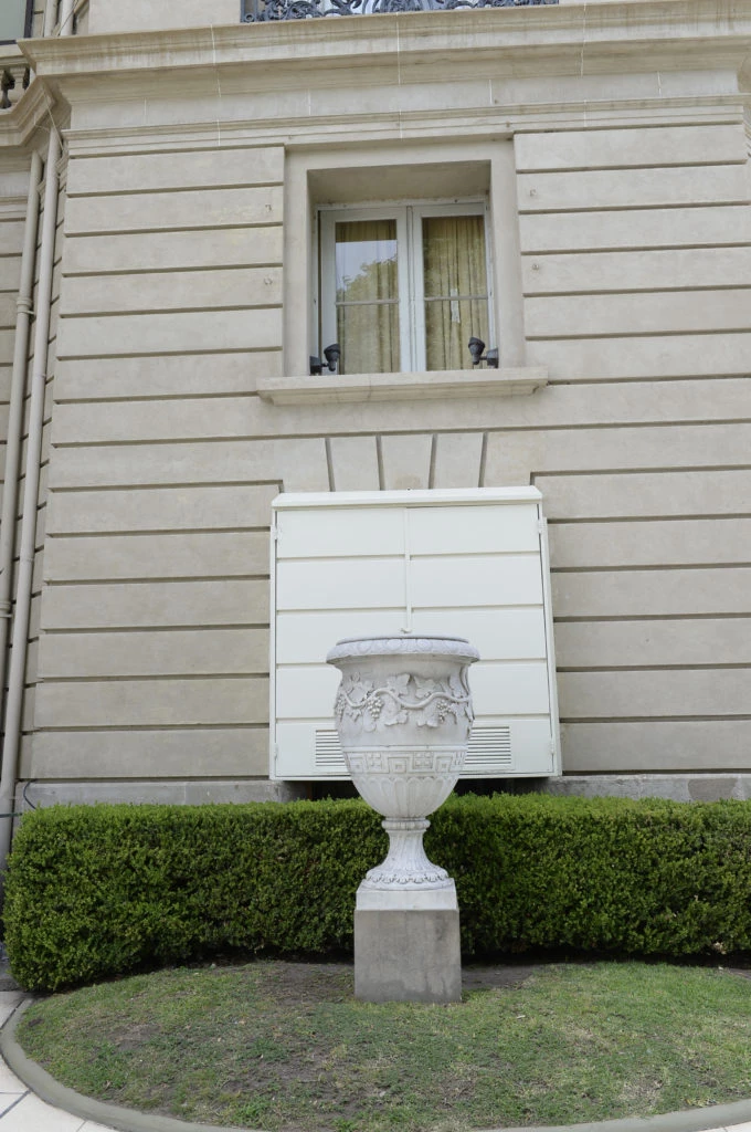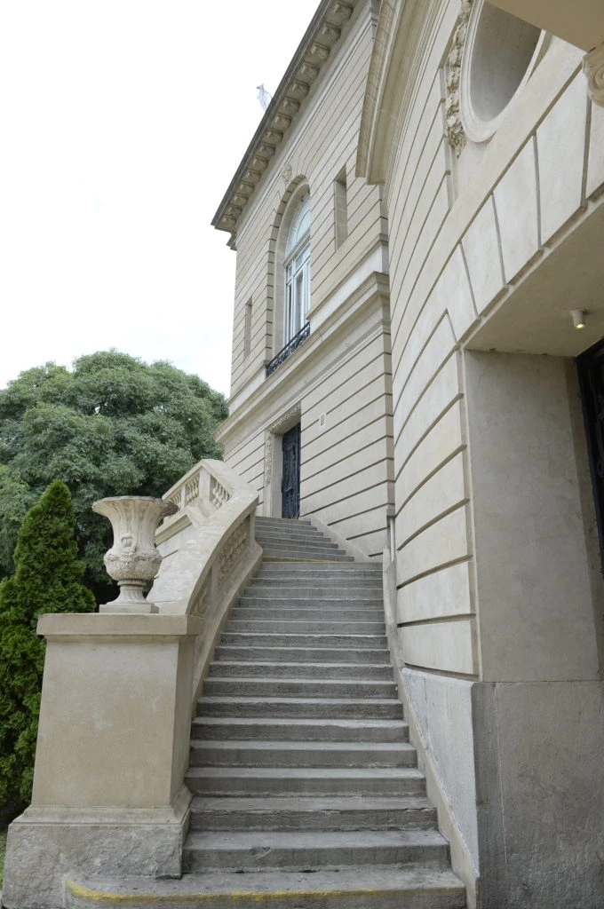 La cour d’honneur, enmarcado por rejas artísticas precede varios pabellones rodeados de jardines donde reinan tipas y jacarandas que florecen en noviembre, esculturas y escalinatas.