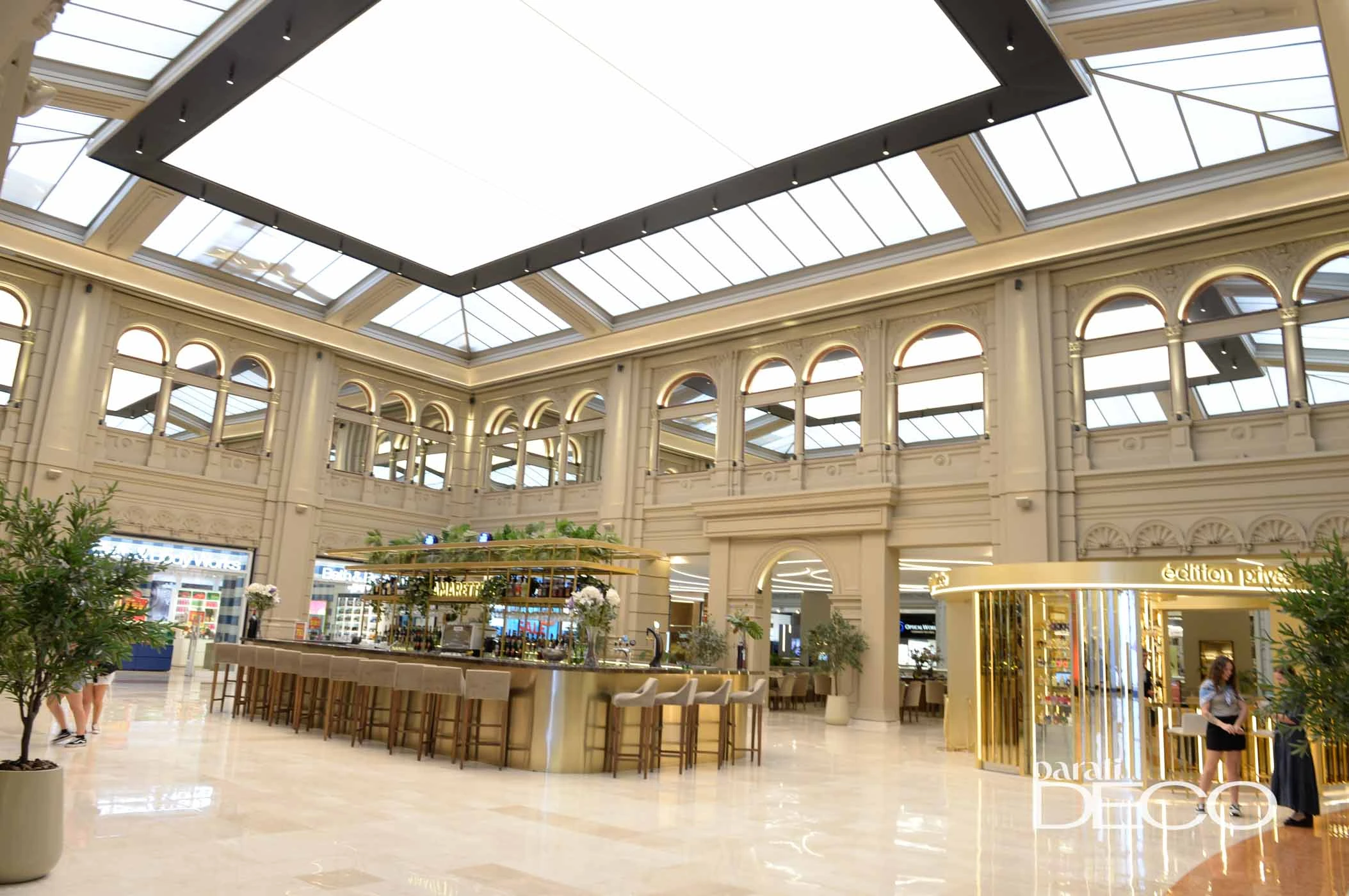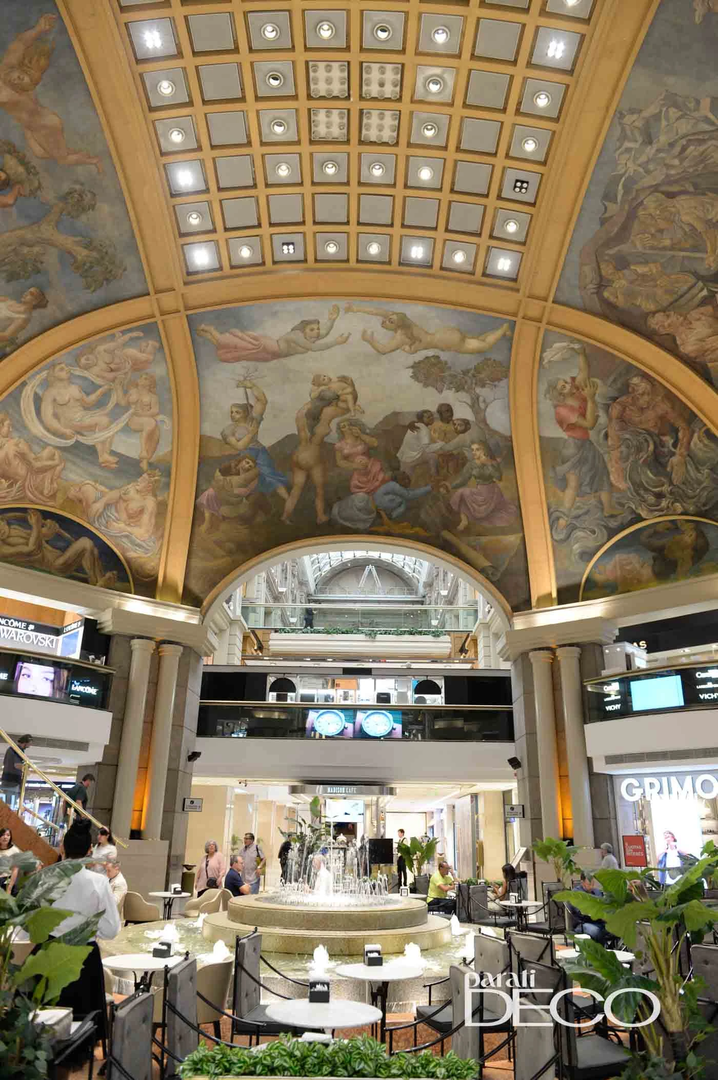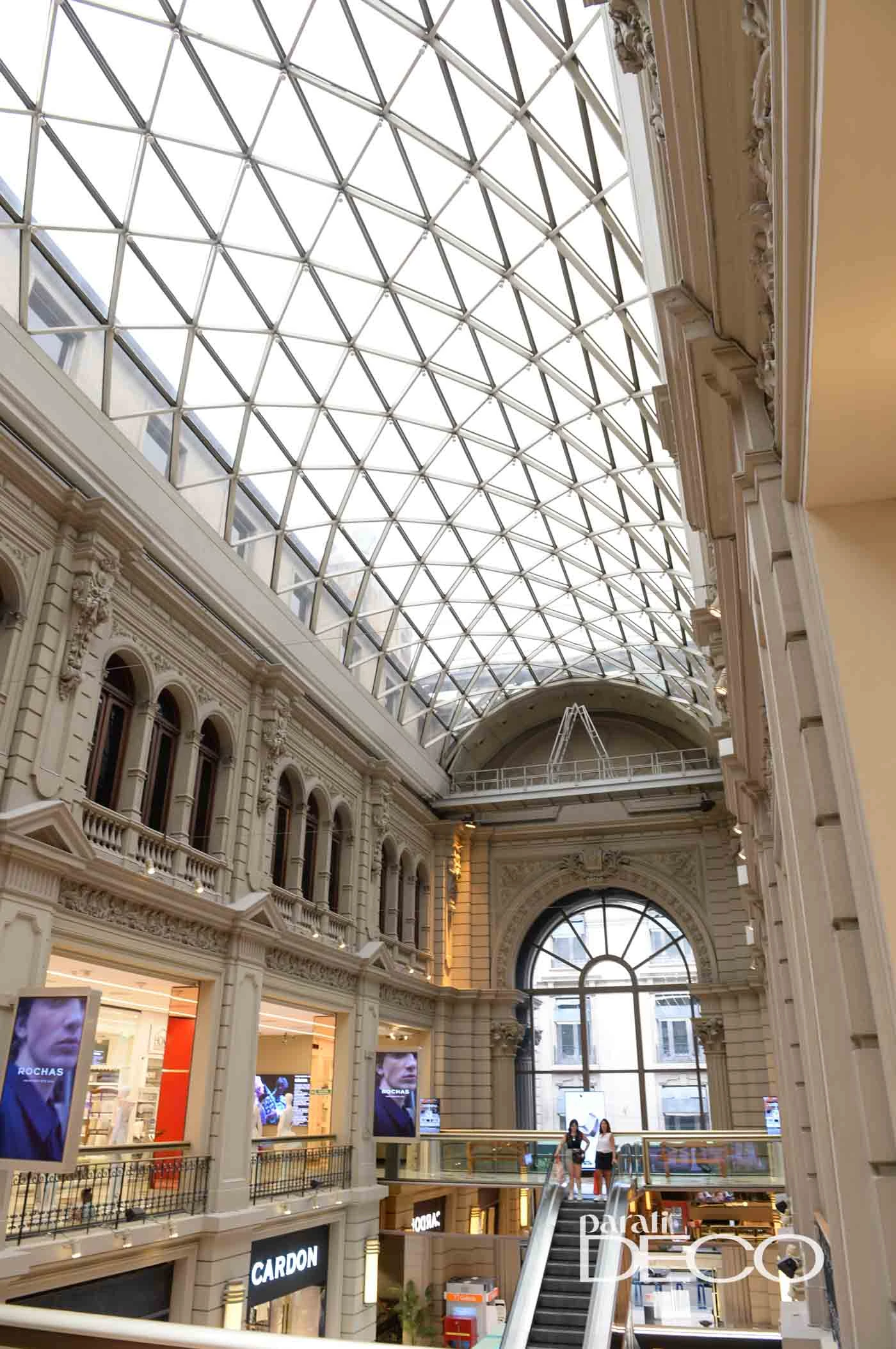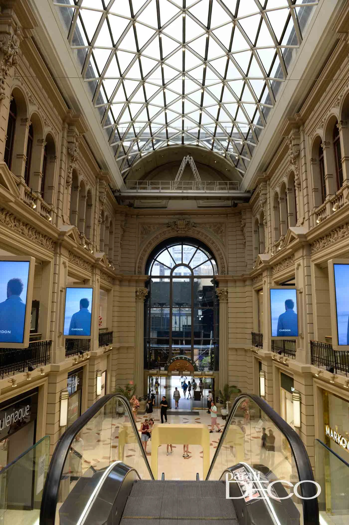 Esa idea se refleja claramente en su arquitectura: calles internas que se cruzan, techos de vidrio que dejan pasar la luz natural y una gran cúpula central pensada como punto de encuentro. El edificio no estaba diseñado solo para comprar, sino para recorrerlo y habitarlo.