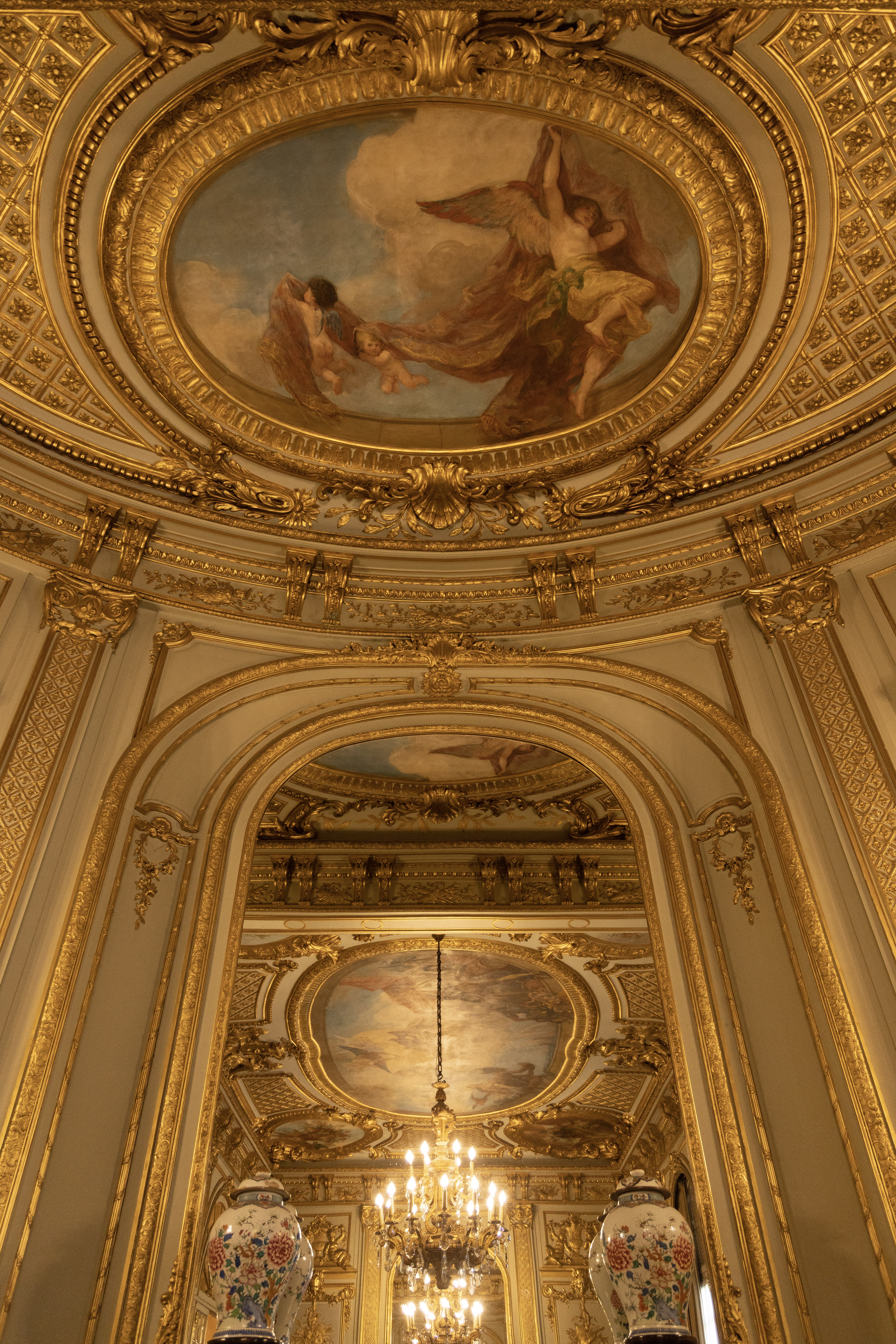 El "Salón Dorado", en la casa que habitaron Mercedes Castellanos de Anchorena y su hijo Aarón, resulta el ámbito más opulento y ceremonial de estilo neobarroco, enriquecido por el arte de Michelle Rondenay con una pintura que remata el techo con motivos religiosos combinados con una alegoría histórica de la conquista de América y su fortuna, representada por monedas de oro.