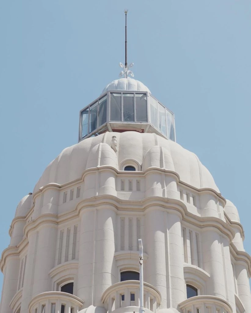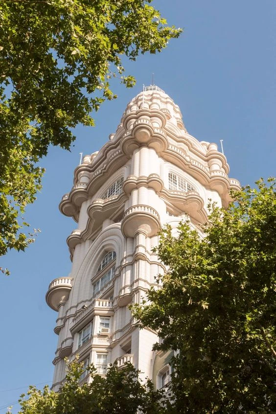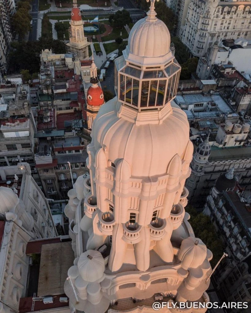 Su cúpula está inspirada en el templo Rajarani Bhubaneshvar (indio, del siglo XII) para representar el amor tántrico entre Dante y las técnicas de Beatriche. En dialogo permanente a través de la luz de su gemelo, el Palacio Salvo de Montevideo, las torres se emparentan casi como monumentos de la arquitectura rioplatense en su apogeo.