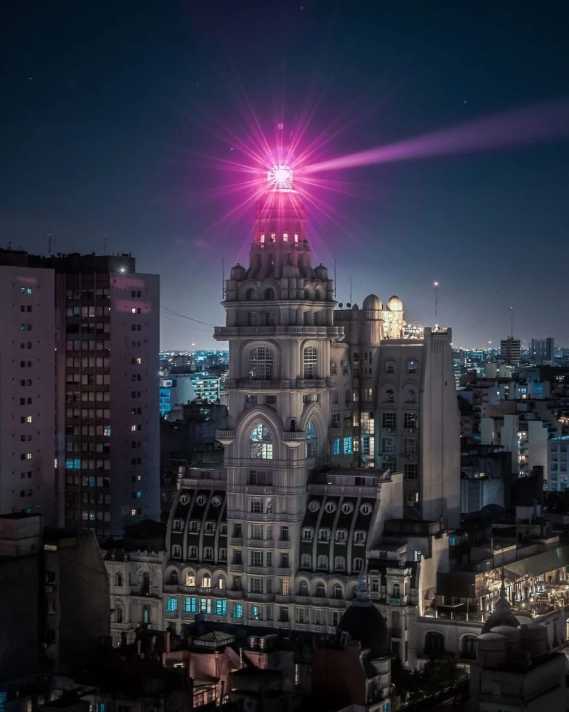 Frente al estuario del Río de la Plata y como faro de bienvenida a los barcos que se acercaban, marcaba la desembocadura. Así también desde Uruguay, su luz se advertía como destello purpurino. Un mismo lenguaje fraternal eco del otro lado del río, en Montevideo donde se erigiese su gemelo, el Palacio Salvo.