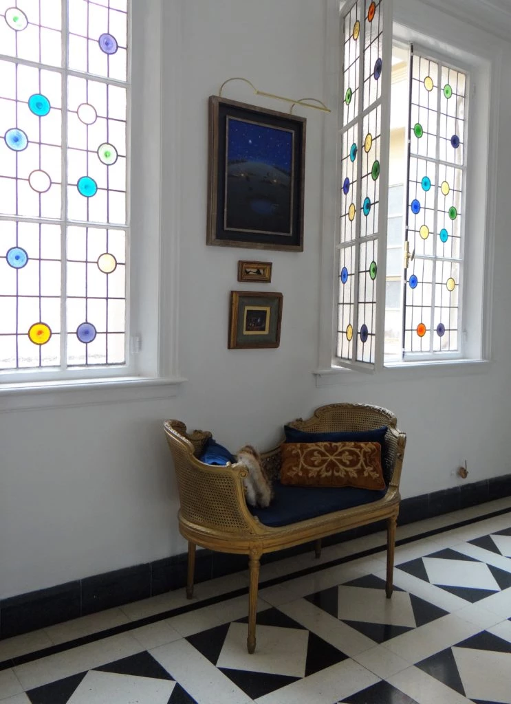 Ya adentro, dos ascensores me transportan a otra época. La luz y los tenues colores de los grandes ventanales parecen improvisar un set de filmación donde me sentía protagonista. La puerta de gran altura se abrió y un gran living comedor integrado dejaba ver el espíritu de sus vivientes.