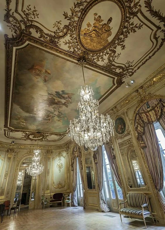 El Salón de Baile o de Honor luce una versión más temprana del estilo Luis XV. Con una mención estelar a la chimenea de mármol tallado y bronce cincelado. Mirando hacia arriba, el cielo raso está decorado con figuras mitológicas que compiten con las arañas de estilo Luis XV, el busto del Rey Henri IV. Los paneles con pintura decorativa sobre los espejos reflejan el dorado de la boiserie tallada.