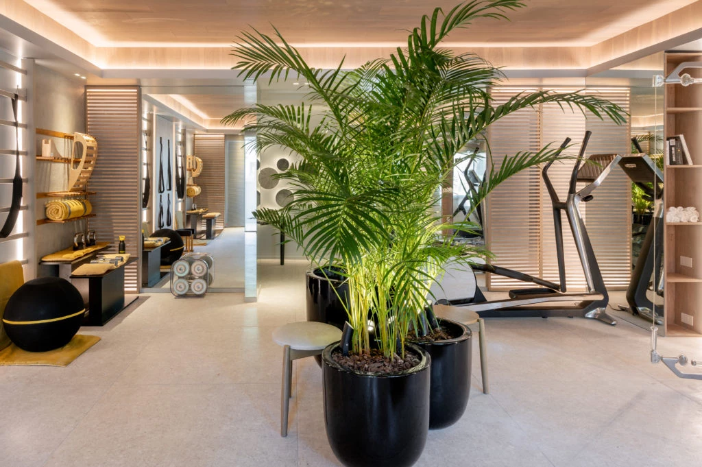 En My personal place se combinaban fitness y área de relax dentro de un espacio trabajado con diferentes envolventes, superficies, acabados, y mucho acento en la iluminación. En la ambientación, una cuidada selección de muebles de Matriz Design y equipamiento Matriz Wellness, de Technogym, como los espaldares retroilumiandos y el yoga wall.