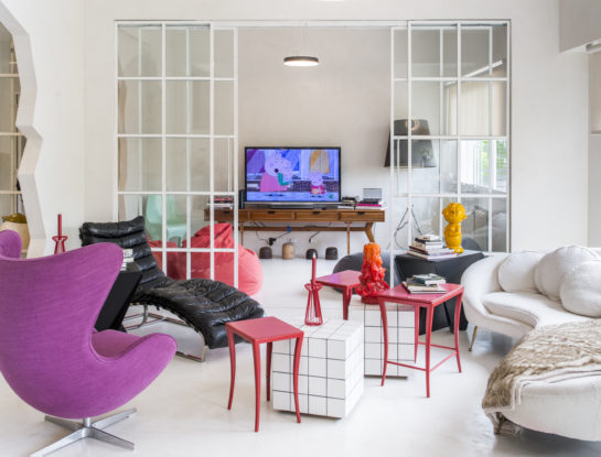 El estudio de la diseñadora Coty Larguía se unió a Celeste Bernardini y Patricio Lix Klett, de La Feliz, para resolver un espacio de uso flexible en tan solo 48 m2. Lo llamaron Un mundo feliz, y lo resolvieron con un juego entre las líneas curvas y circulares de los muebles y su réplica en la arquitectura.