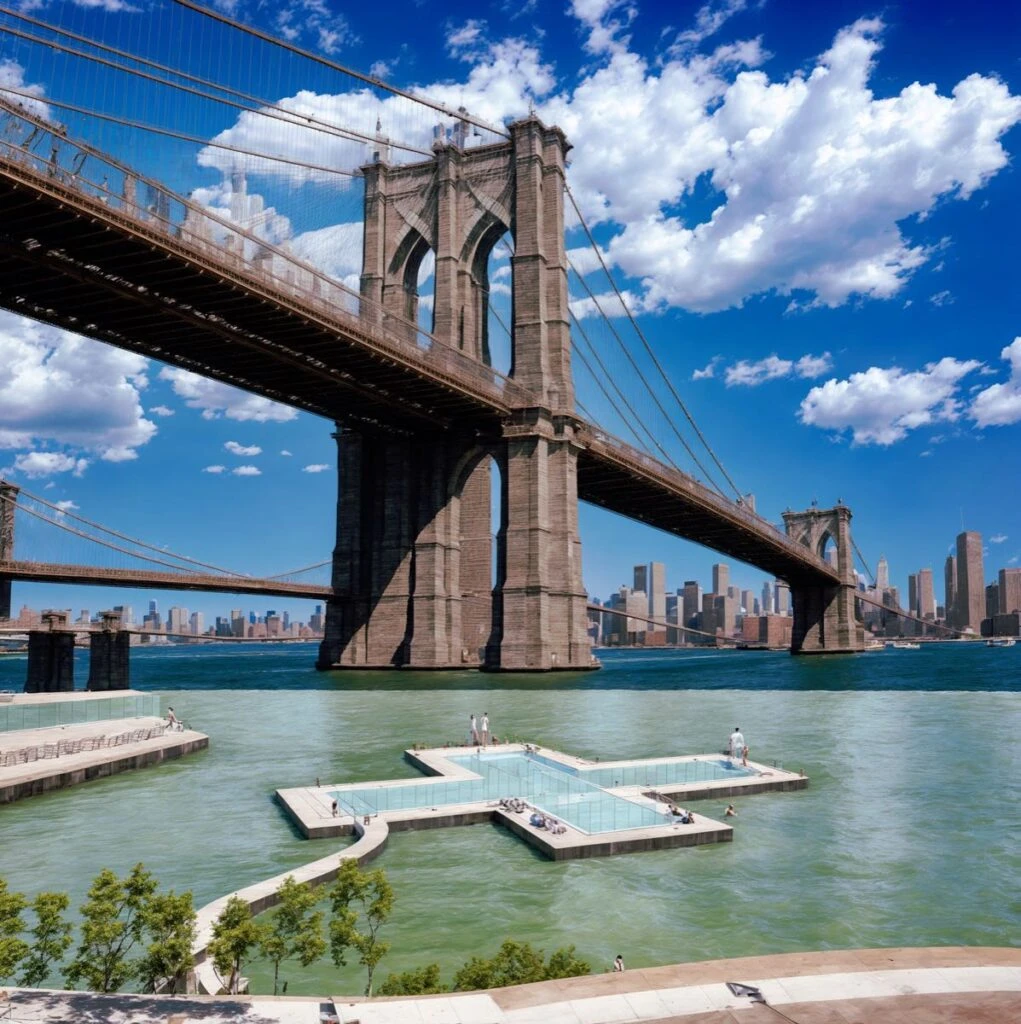 La piscina de Friends of +POOL patentó el diseño de su instalación que será vecina a los grandes íconos de la ciudad, como la Estatua de la Libertad y el Puente de Brooklyn.