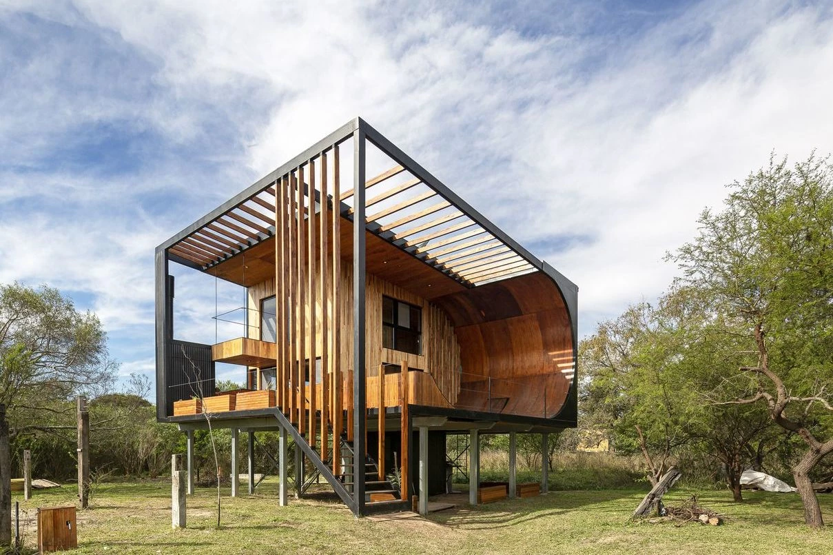 ¡Divina! Esta cabaña prefabricada se camufla con el paisaje boscoso de La Juanita, Uruguay