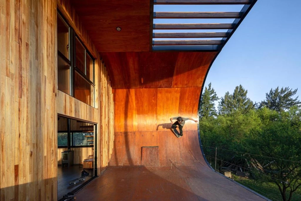 El arquitecto Macu Bulgubure (@macu_bulgubure) hizo realidad el sueño de uno de sus clientes y proyectó, diseñó y construyó esta casa 100% sustentable y con pista de skate en la zona de islas del río Paraná frente a la ciudad de Rosario, Argentina.
